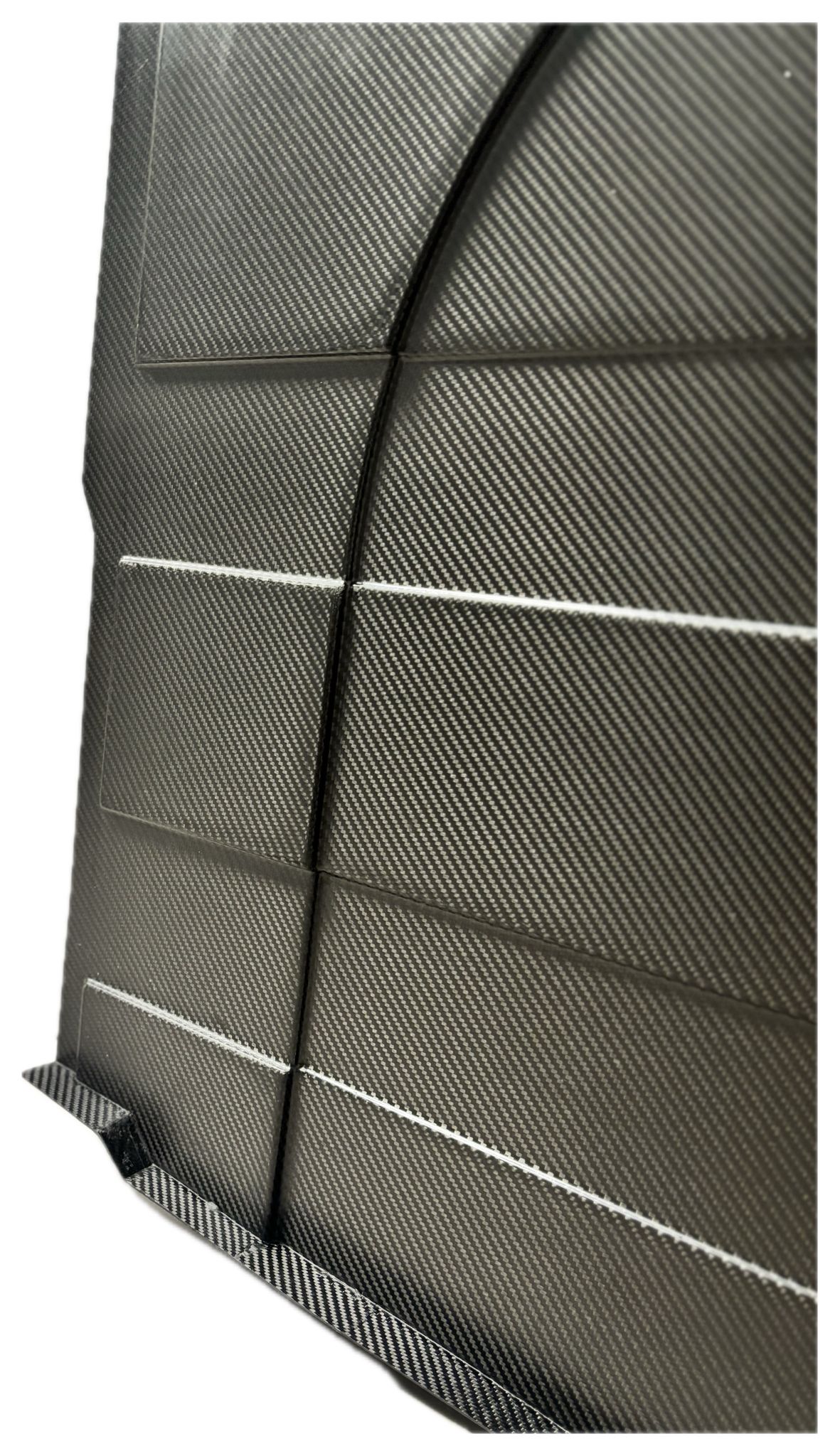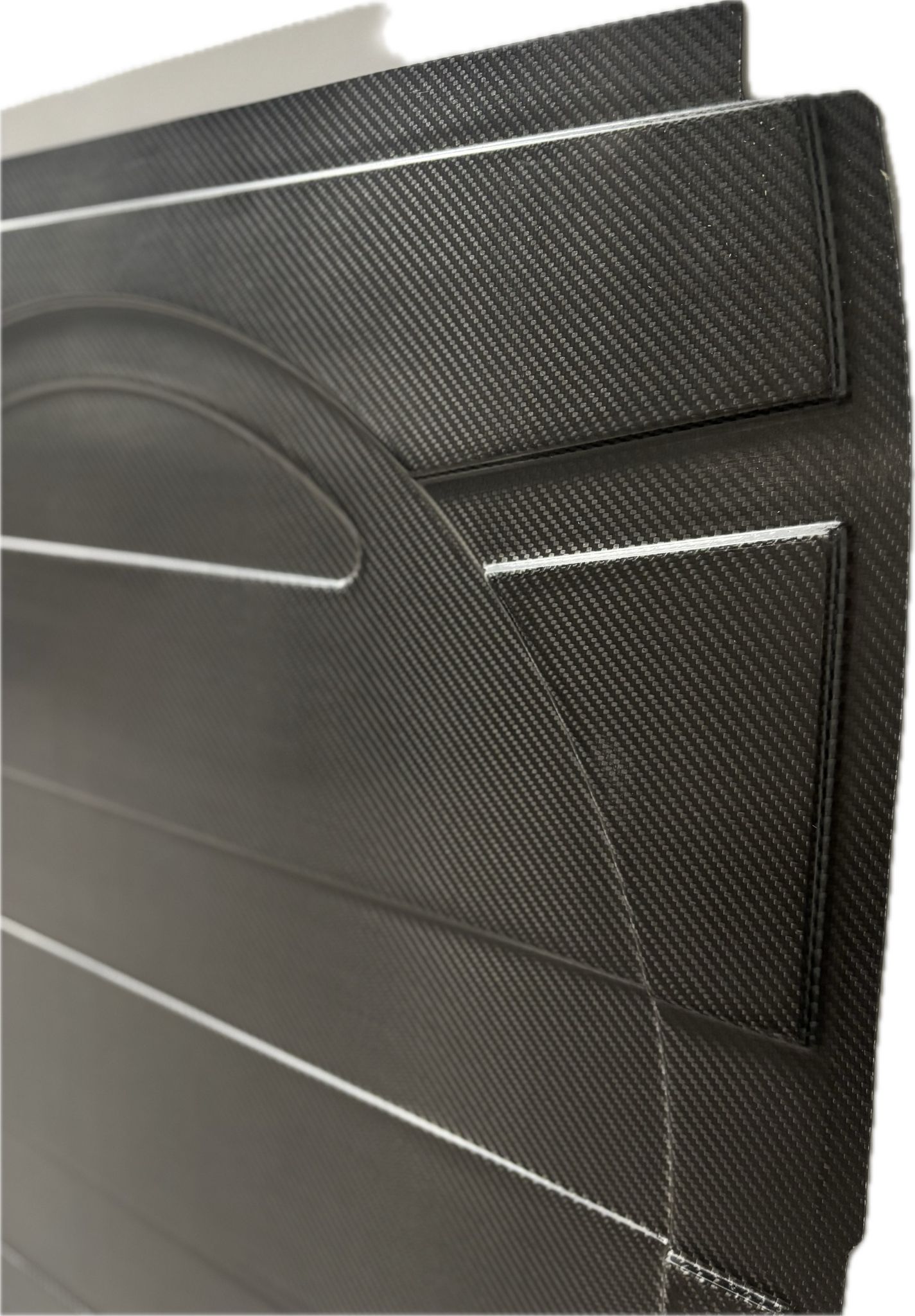 Die Carbonplatte dient zur Kofferraumverkleidung im Audi RS4 B5. Die Oberfläche wird in Sichtcarbon hergestellt. Bei Sichtcarbonteilen wird die Faser noch sorgfältiger ausgelegt, sodass die perfekte Carbonoptik zum Vorschein kommt und mit Klarlack überzogen werden kann.